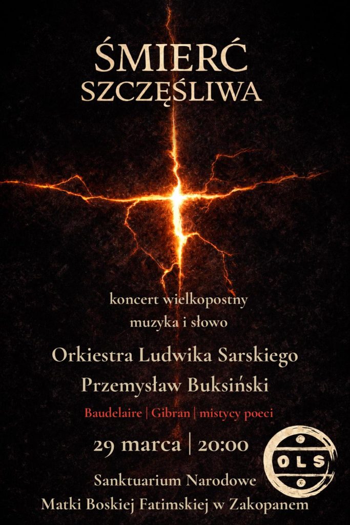 Również w najbliższą niedzielę o godz. 20.00 rozpocznie się koncert pieśni pasyjnych pt. „Śmierć szczęśliwa” w wykonaniu Orkiestry Ludwika Sarskiego oraz multiinstrumentalistów Piotra Tomali i Damiana Szymczaka. Koncert zaprasza do refleksji nad własnym cierpieniem, ukazując jak w każdej trudności może kryć się perspektywa odkupienia i nadziei. Serdecznie zapraszamy.
